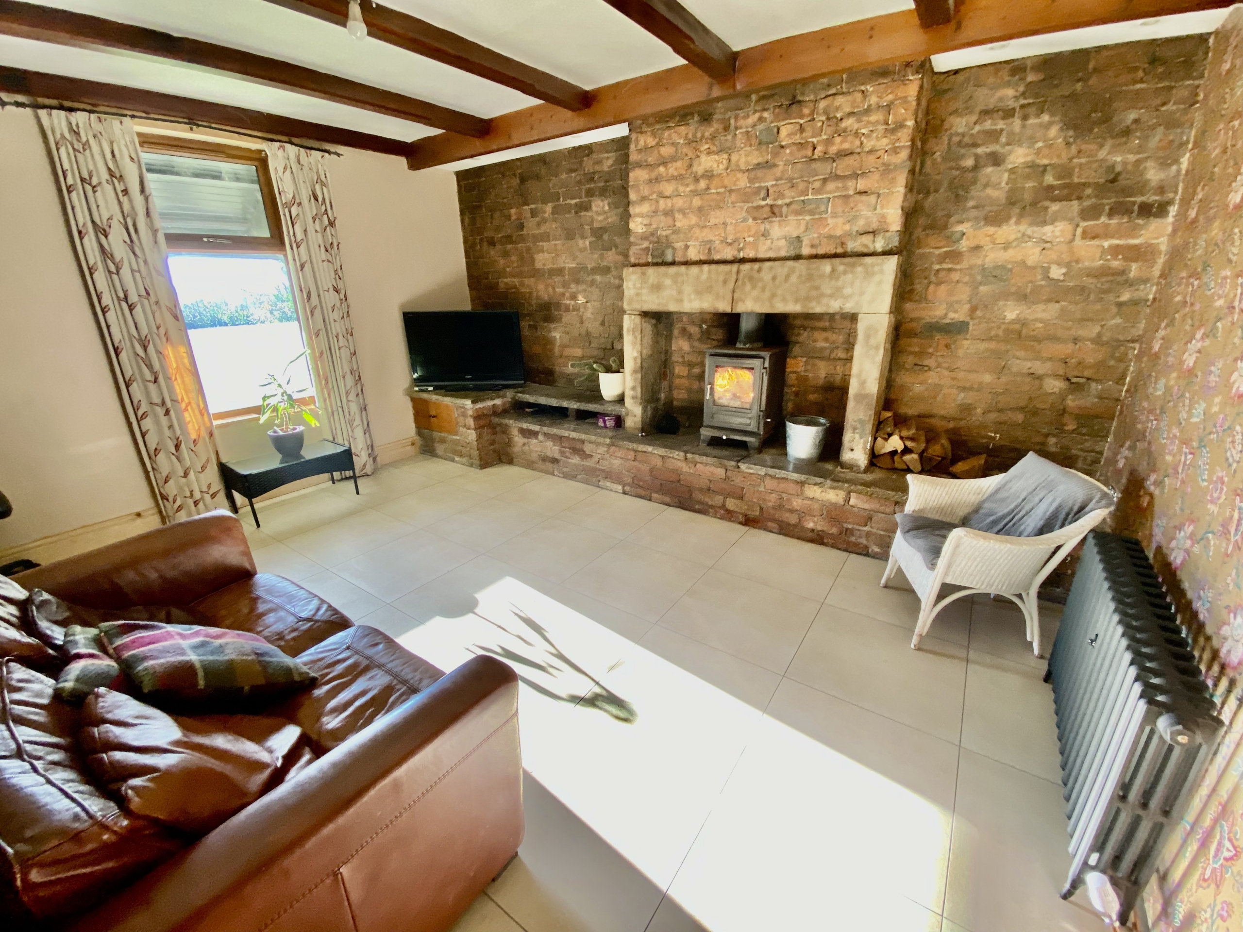 Sitting Room 3.88 m x 4.90 m Feature stone fire surround fireplace on stone flagged hearth with inset cast iron wood burning stove